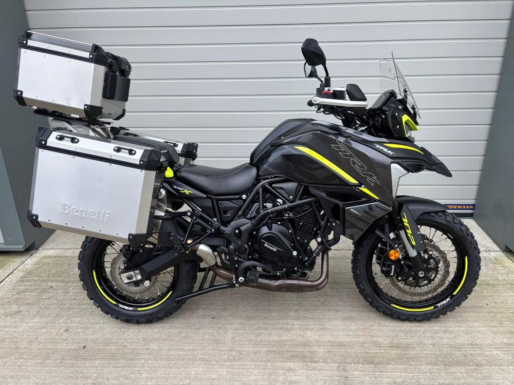 Amazing value for such a high specked machine. This Benelli TRK 702 X looks stunning and has the itinerary to match. It is powered by the very well tested Kawasaki twin cylinder engine, very good handling with good spec suspension front and rear. Brand new Bridgestone AX41 tyres and a brand new D.I.D drive chain add to the package. Aluminium hard luggage including top box and panniers. The full spec: